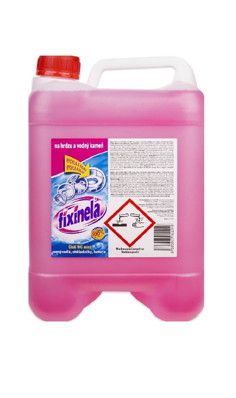 Fixinela na rez a vodní kámen 5 l - Účinně čistí a likviduje bakterie, rozpouští vodní a močový kámen, odstraňuje rez a další usazeniny. Fixinela má vysoký čistící účinek, lehce a rychle uvolňuje špínu a usazeniny z povrchu. Klasika na čištění umyvadel, sprchových koutů, baterií, wc mísy, obkladaček atd.