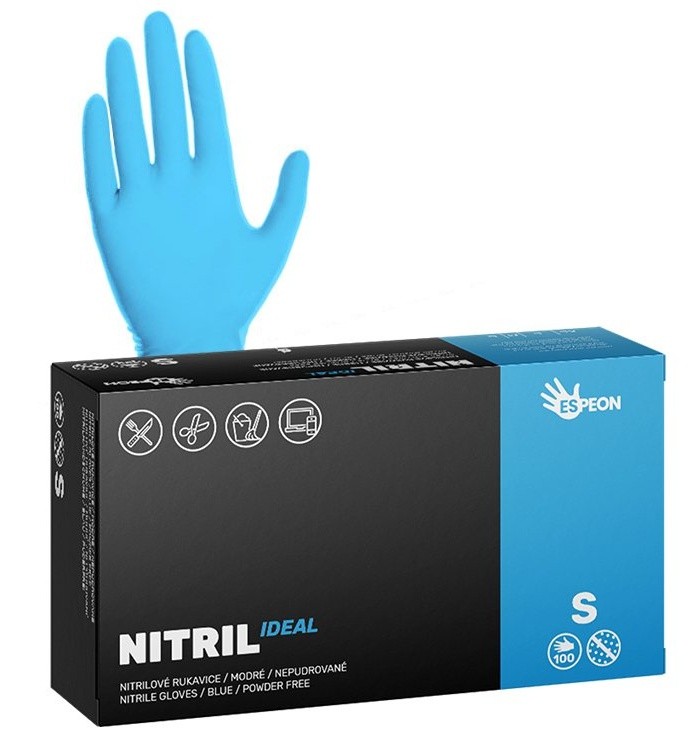 Jednorázové nitrilové rukavice Espeon NITRIL IDEAL modré vel. S box 100ks