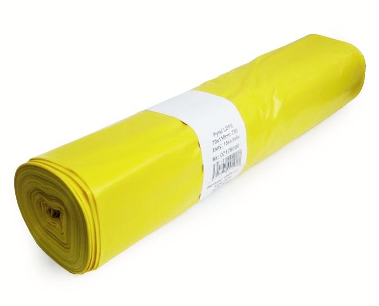LDPE pytle na odpad rolované 120 lrozměr (Š x V): 70 x 110 cmsíla: 80 µmbarva: žlutémnožství na roli: 15 ksmnožství v kartonu: 10 rolíCena za 1 roli (15 ks)
