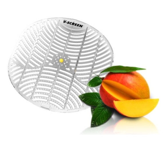 Pisoárové sítko V-SCREEN Citrus Mango - osvěžující směs tropického manga a citrusů s pomerančovými tóny.