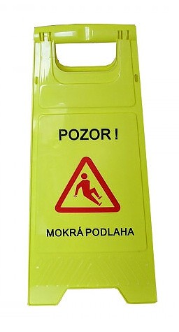 Plastová výstražná tabulka o výšce 57cm slouží na upozornění osob pohybujících se po mokré podlaze, kde hrozí nebezpečí podklouznutí.